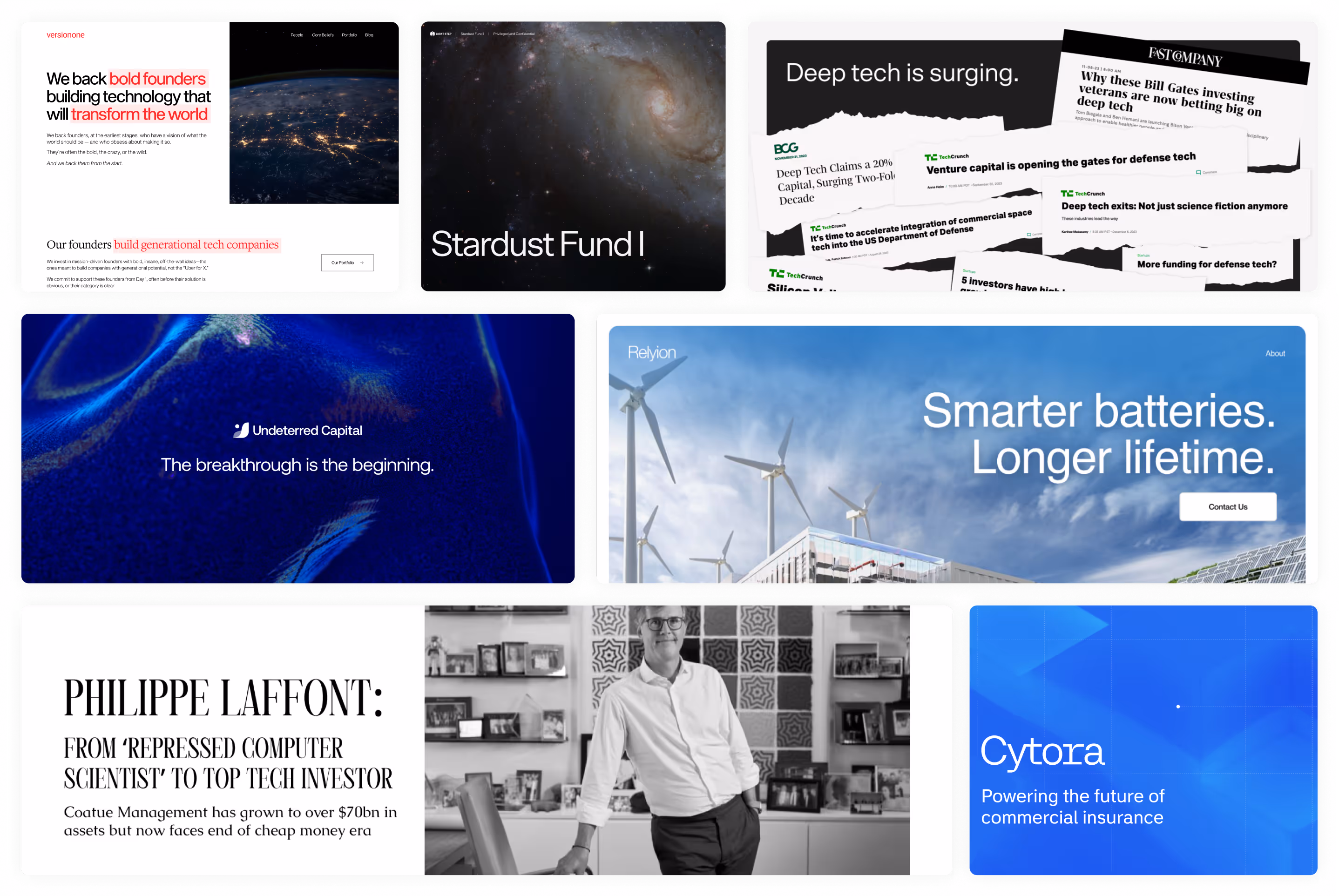 We also help these same startups + funds with branding, website design & development, sales collateral, research reports, and more.
